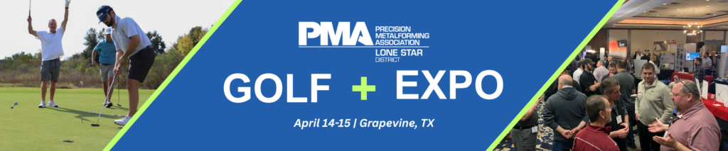 Grapevine, TX — February 4, 2026 — The Precision Metalforming Association (PMA) Lone Star District announced today the return of its Fourth Annual Spring Golf Outing, taking place Tuesday, April 14, 2026, at Grapevine Golf Course, followed by the Inaugural PMA Lone Star Suppliers Expo on Wednesday, April 15, at the Courtyard by Marriott Grapevine – DFW.